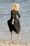 Claudia Schiffer thongs and tits in sheer gown in a Chanel photoshoot.