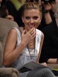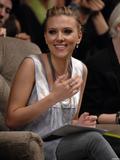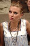 Scarlett Johansson fas dark eye make up on fashion show. I think this is the right style for Scarlett Johansson.