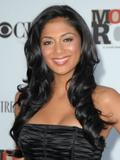Nicole Scherzinger on Movies Rock: A Celebration of Music in Film. In black and pink dress on stage.